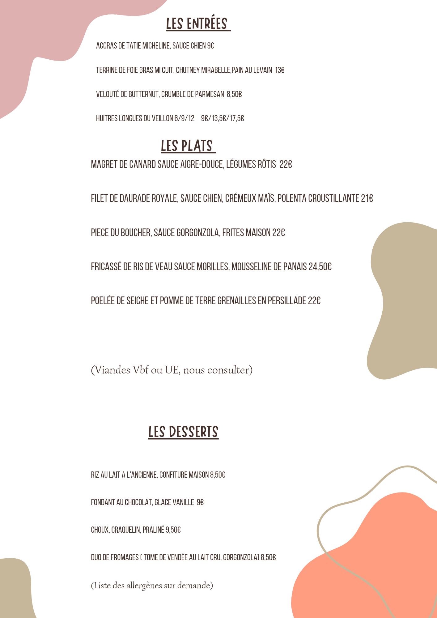 Après avoir passé 20 ans aux Antilles nous proposons une cuisine avec des influences exotiques et d’ailleurs.